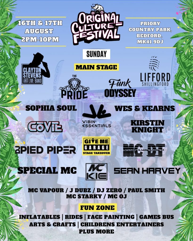 Original Culture Festival is back for 2025, descending upon the beautiful backdrop of Priory Country Park in Bedford on Saturday 16th and Sunday 17th of August. Bringing you two fun-filled days of live music, incredible DJs and performances.